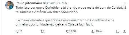 E mesmo com as competições em andamento, uma situação chamou a atenção nas redes sociais envolvendo um jogador do Cuiabá e o Corinthians.