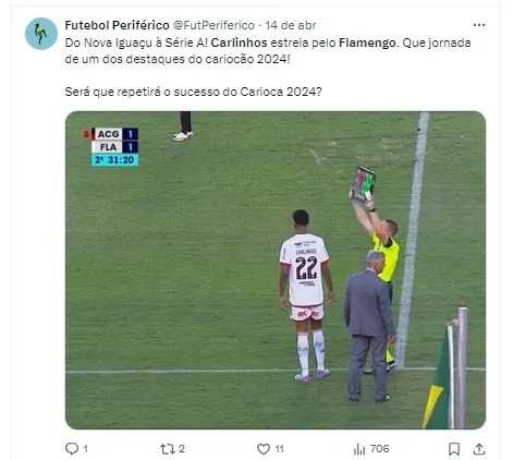 Carlinhos, que se destacou pelo Nova Iguaçu no Campeonato Carioca, teve apenas sua segunda partida pelo Rubro-Negro, substituindo Pedro durante o jogo contra o Palmeiras.