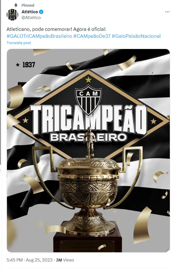 Reconhecimento do titulo do Atlético-MG
