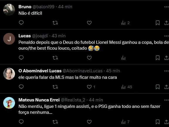 Ele vai além sobre ser subestimado e frisa: “Gosto quando as pessoas duvidam de mim, vou lá e tenho sucesso. As críticas não me abalam”, finalizou o Bola de Ouro em cinco oportunidades.