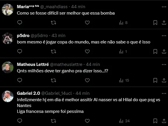 O craque português vai além e afirma novamente: “Já estamos melhores que a liga francesa”, completou antes de falar que gosta de ser subestimado pelas pessoas.