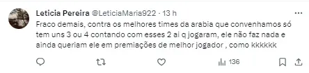 A próxima partida do Al-Nassr é contra o Al-Fayha, na quarta-feira (14), às 15h (de Brasília), pelas oitavas de final da Liga dos Campeões da Ásia.