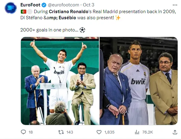 Cristiano Ronaldo, indiscutivelmente um dos maiores jogadores da história e de sua geração, é reverenciado por seu instinto goleador e conquistou o status de ídolo em três dos maiores clubes do mundo: Manchester United, Juventus e Real Madrid.