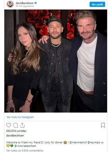 Na legenda da foto, Beckham escreveu: “Bem-vindo a Miami, meu amigo. Apenas para jantar”, acompanhado de um emoji indicando risadas.