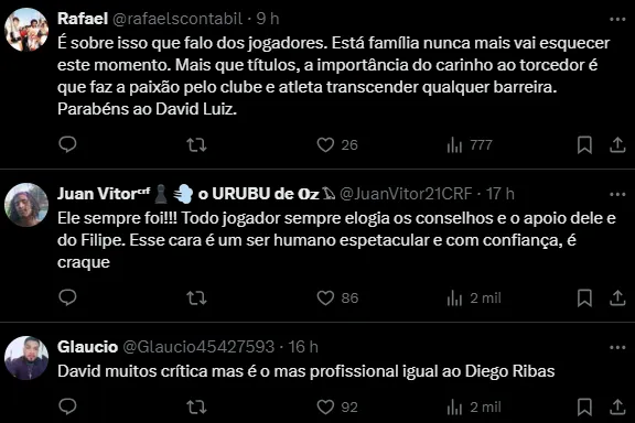 David Luiz sinaliza sobre as cobranças: “Acho que é mais um problema mundial, estamos vivendo num momento onde as pessoas estão ansiosas, depressivas. As pessoas estão imediatistas e já não têm paciência para nada”, disse.