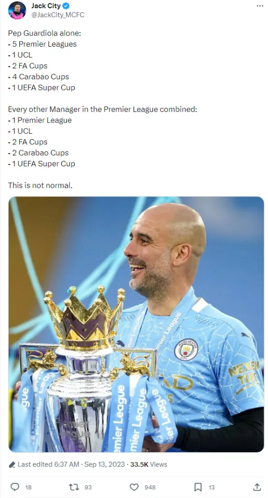 Dessa forma, o treinador espanhol, que teve passagens vitoriosas pelo Barcelona, Bayern de Munique e agora pelo Manchester City, é o técnico que mais gastou em transferências, somando cerca de 2,04 bilhões de euros, como informa o 90min Brasil.