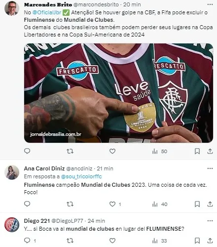 Segundo informações do jornal “O Globo”, essa contenda política pode resultar na suspensão de clubes brasileiros em competições internacionais. O Fluminense, que se prepara para o Mundial de Clubes com estreia marcada para o dia 18, seria diretamente impactado. Caso a Fifa tome medidas rápidas, o Tricolor carioca ficaria proibido de participar do torneio.