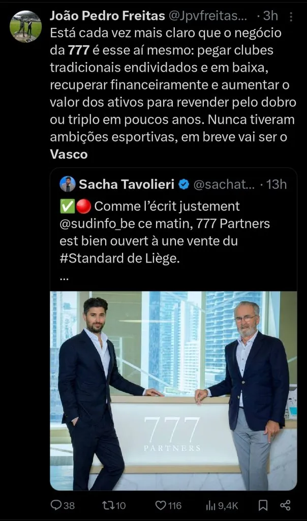 Já há um consenso de qual dos oito times da holding pode ser vendido para gerar retorno financeiro instantâneo. É o Standard Liége, da Bélgica, adquirido nos últimos dois anos.