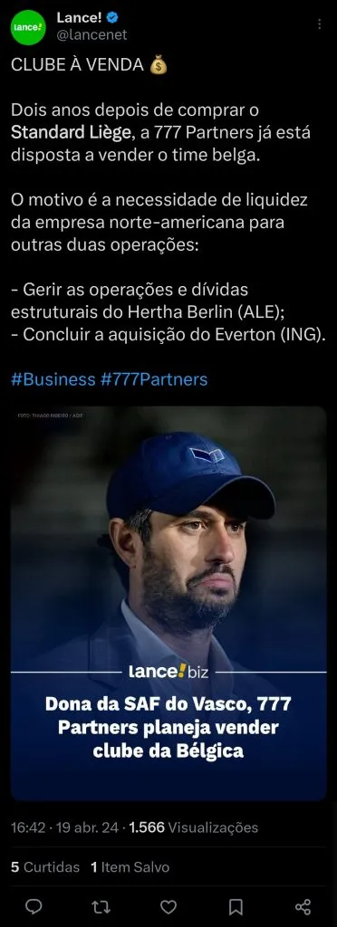 A 777 precisa gerir as operações e começar a diminuir as dividas do Hertha Berlim, da Alemanha, além de neste momento também estar com a missão de finalizar a aquisição do Everton, da Inglaterra.