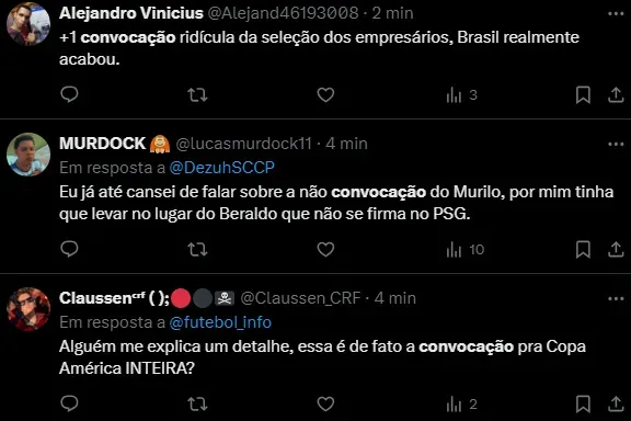 Os jogadores chamados desta vez enfrentam México e Estados Unidos, além de ficarem à disposição da comissão técnica para a disputa da Copa América; o Brasil está no Grupo D.