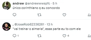 “Empurra jogador adversário… ele pensa que é o que aqui? Ele apita jogo, fala mal da Federação. Se você não gosta de como é a coisa aqui, vai embora. Vai treinar o Almería ou quem queira. Vergonha. Ataca imprensa, agride, ofende, é desrespeitoso. Ofende e ninguém fala nada, está tudo bem (…) O que ele fez com o Calleri… ninguém falou nada. Estamos aqui sem lei, sem ordem, sem organização, cada um faz o que quer. Uma série de amadores cuidando de futebol. Salve-se quem puder”, disse o ex-presidente do Corinthians.