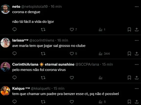 Igor Coronado está com dengue. O Corinthians confirma a informação em comunicado oficial na tarde desta sexta-feira (29). A nota chegou na torcida como uma bomba.