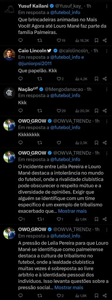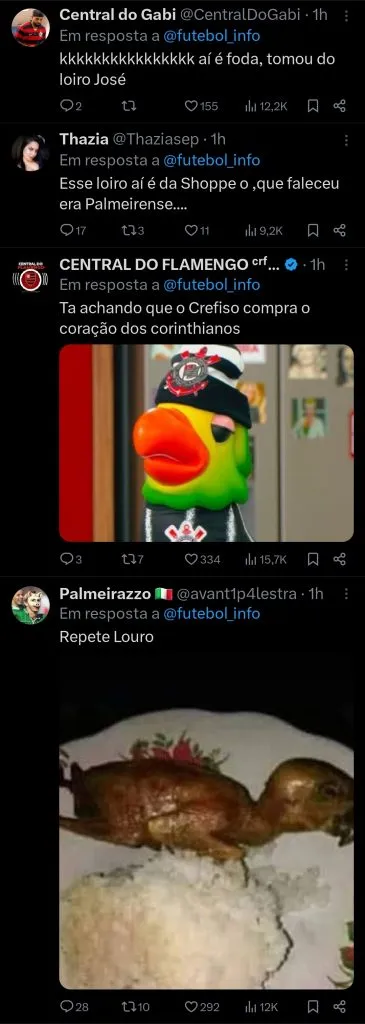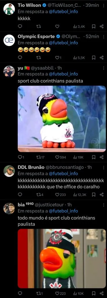 “Eu sou parente, mas eu tô mais pra gavião, desculpa”, respondeu Louro Mané na medida para agitar a torcida do Corinthians ao lembrar do animal que representa o clube como um símbolo que é carregado até como nome da principal organizada do time.