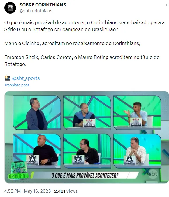 No Arena SBT desta segunda-feira (28), o ex-jogador e atual comentarista Emerson Sheik abordou a atual fase do Botafogo e também comentou sobre as chances do Fogão se sagrar campeão neste ano.