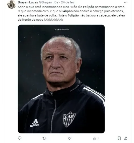 O técnico Luiz Felipe Scolari, conhecido como Felipão, demonstrou serenidade diante dos xingamentos direcionados pela torcida do Atlético-MG durante o empate por 1 a 1 contra o América-MG, em um clássico válido pelo Campeonato Mineiro.
