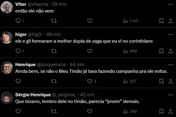 “Mas por respeito aos clubes que têm me procurado para futuro e até mesmo ao meu clube atual, quis vir aqui adiantar esse assunto e me pronunciar com o coração aberto e honestidade”, completou o ex-zagueiro do SCCP.