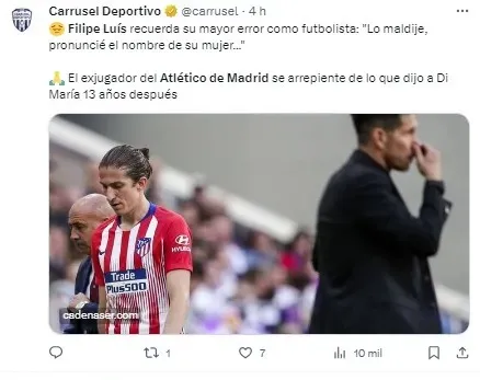 O episódio remonta ao período em que Filipe Luís chegou ao Atlético de Madrid e se preparava para enfrentar o Real Madrid. Agüero, seu companheiro de equipe na época, teria sugerido que uma abordagem mais agressiva a Di María durante o jogo poderia desestabilizar o jogador adversário.