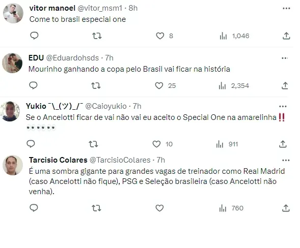 Diante de toda essa especulação e com a torcida sem ter conhecimento sobre o futuro real da seleção brasileira, surgiram vários comentários nas redes sociais pedindo a contratação do português José Mourinho.