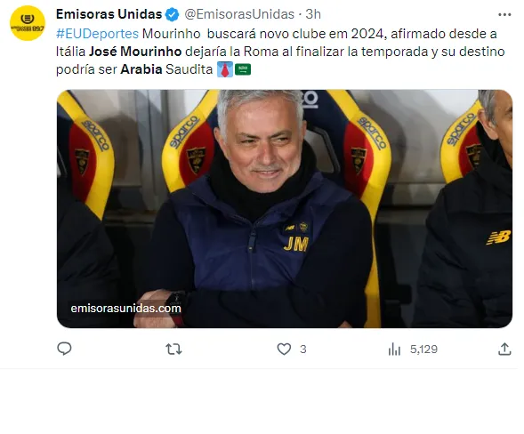No entanto, parece que a parceria entre a Roma e o treinador português não terá continuidade após o término da temporada 2023-2024. José Mourinho confirmou sua decisão de não permanecer devido a desentendimentos com os proprietários do clube, como informado pelo DiMarzio.