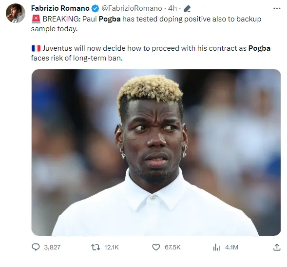 O caso de doping envolvendo Pogba foi registrado no mês passado (setembro), e agora ele tem um prazo de 10 dias para apresentar uma contraprova. Caso a acusação se confirme, o jogador pode enfrentar uma punição que varia de 2 a 4 anos, o que o deixaria afastado do futebol.