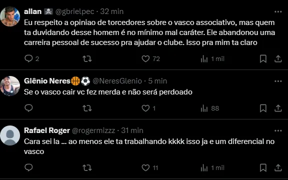 “Foram uma série de fatores que acarretaram para nós tomarmos essa decisão. Seremos cobrados por ações, mas jamais por omissões. E isso é nosso dever como vascaínos, zelar pelo patrimônio do clube”, declarou.