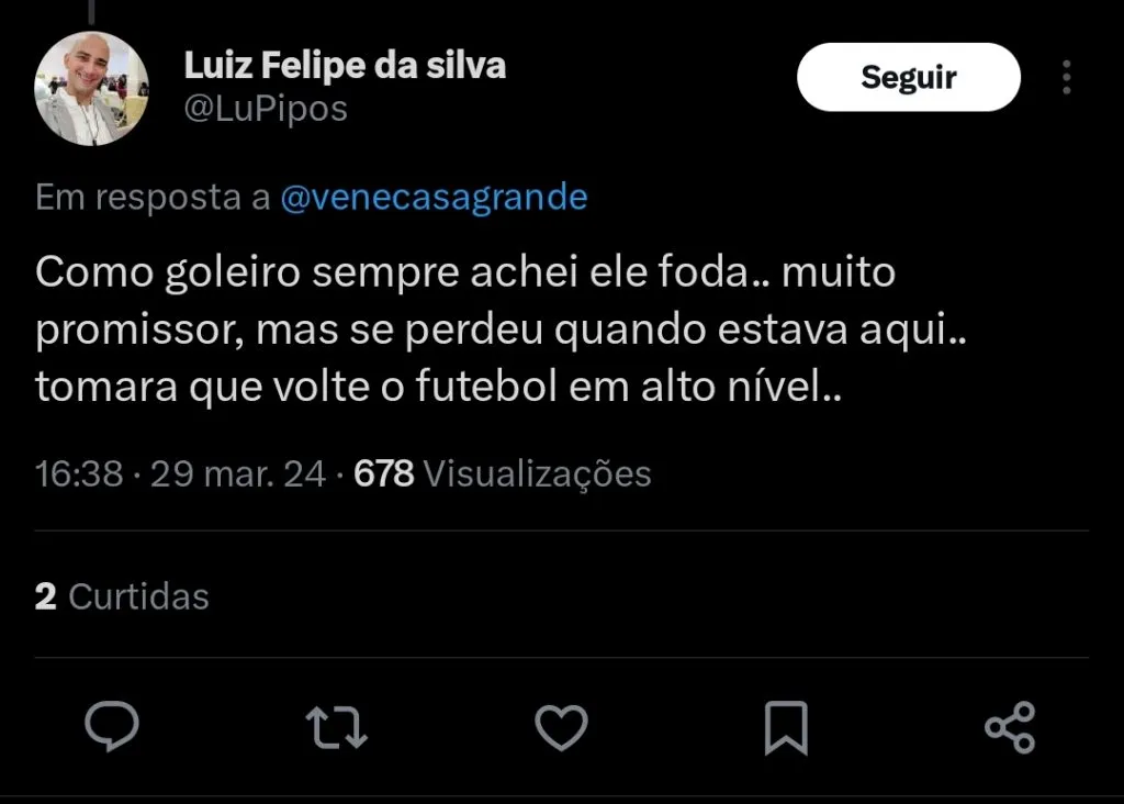 Após partida do Chaves contra o Benfica, Neneca se tornou o assunto principal entre os torcedores do Flamengo. O goleiro foi bastante elogiado por boa parte da Nação, que acredita numa volta por cima do defensor.