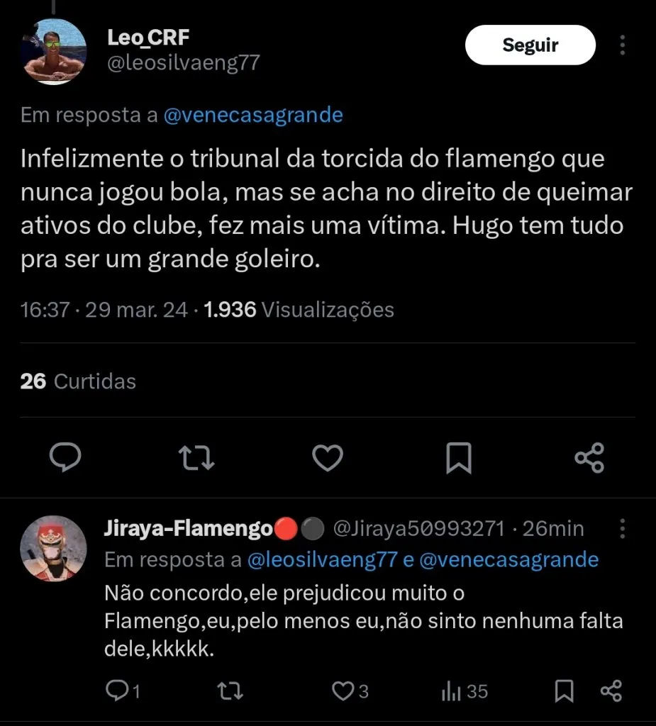 O desempenho do defensor teve tanta repercussão que a torcida do Flamengo fez vários comentários a respeito nas redes sociais.