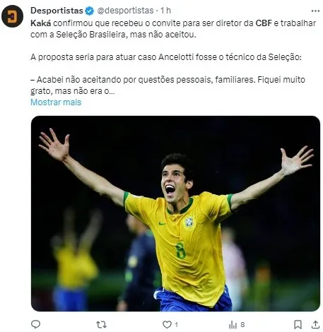 Embora tenha recebido convites para assumir cargos de diretoria, como na CBF, Kaká optou por adiar essa possibilidade por enquanto, priorizando sua vida familiar.