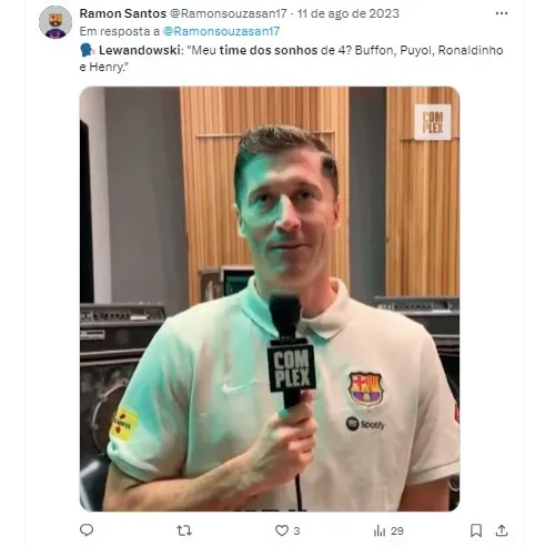 O atacante do Barcelona, Robert Lewandowski, revelou ao jornal britânico The Sun o seu time dos sonhos, uma seleção de cinco jogadores que marcaram o futebol mundial.