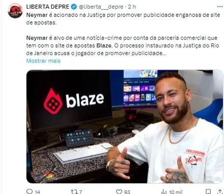 O processo instaurado inclui relatos de pessoas que afirmam terem sido prejudicadas financeiramente pela plataforma Blaze, da qual Neymar é embaixador desde 2022.