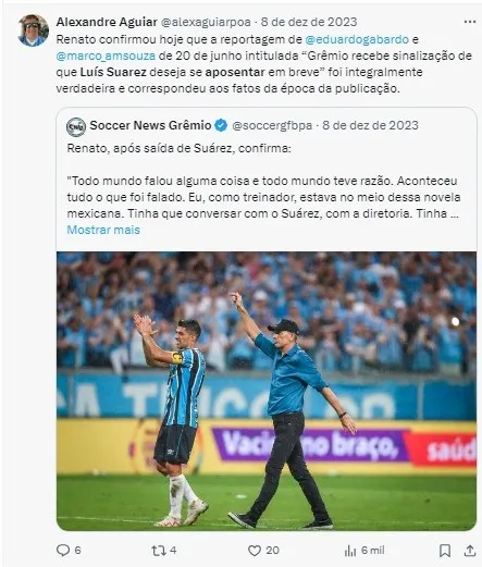 De forma descontraída, o ex-jogador do Grêmio também compartilhou uma brincadeira sobre seu amigo e ex-companheiro de ataque, Lionel Messi.