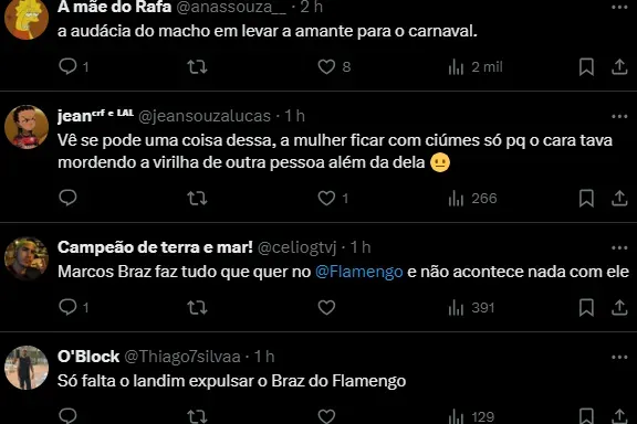 Marcos Braz teria conhecido uma moça no Sambódromo e a mulher descobriu, tomando a decisão de expulsá-lo de casa imediatamente. O assunto está fervendo no meio da torcida do Flamengo.