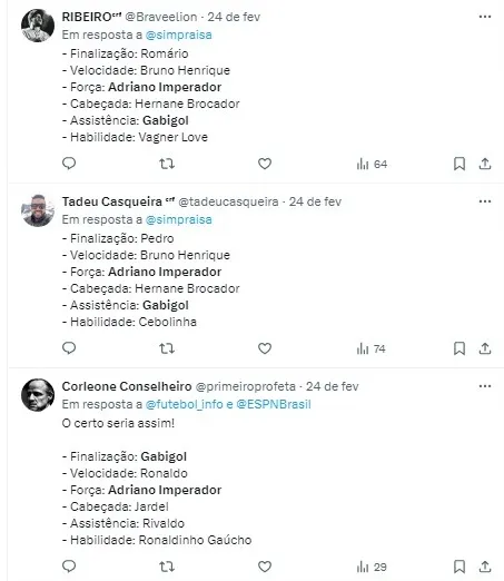 Ele destacou a carreira internacional de Adriano, sua passagem por clubes europeus e seu sucesso na Seleção Brasileira, considerando o Imperador como um jogador “80 vezes melhor” que Gabigol, principalmente pelo que conquistou fora do Brasil.