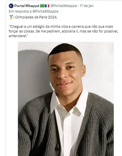 Em entrevista à emissora francesa ‘France 2’, Mbappé expressou seu desejo de participar do evento esportivo, considerando-o uma oportunidade extraordinária.