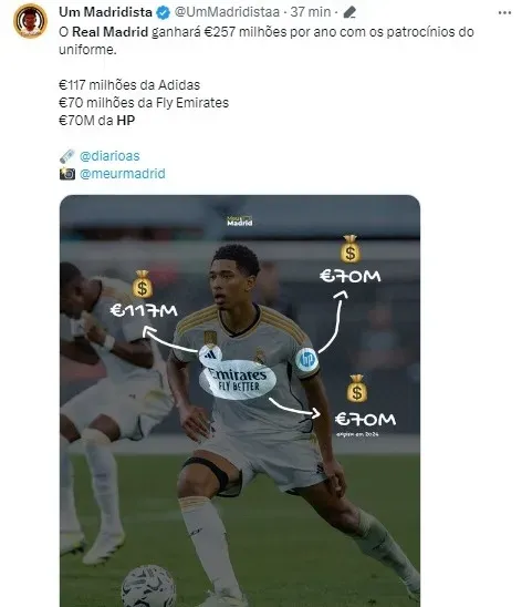 O contrato, que renderá ao clube 70 milhões de euros por ano, eleva o valor total de patrocínios na camisa merengue para impressionantes 250 milhões de euros anuais, ultrapassando a marca de R$ 1 bilhão.