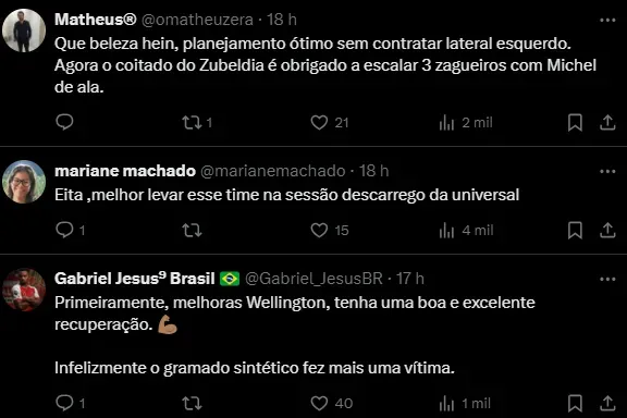 Nas últimas horas, o clube paulista confirmou a lesão do jogador: “(Welington) Realizou exames de imagem que diagnosticaram uma lesão ligamentar no tornozelo direito”, destaca a nota oficial.