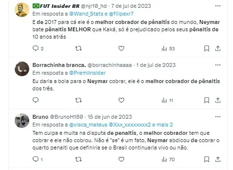 Apesar das críticas frequentes de Neto a Neymar, o apresentador reconheceu os excelentes números do jogador na marca da cal. De acordo com dados do portal Goal, Neymar converteu 73 dos 90 pênaltis que teve oportunidade de cobrar em sua carreira, sendo eficiente tanto pelo PSG quanto pela Seleção Brasileira.