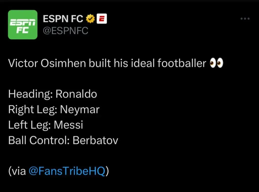 O atacante Victor Osimhen, do Napoli, montou seu jogador ideal com as principais características de grandes nomes do Futebol Mundial.