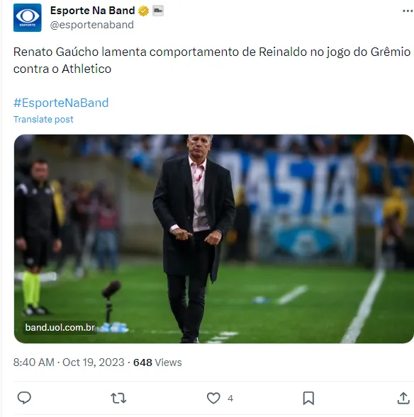 Diante do lance que resultou na expulsão de Reinaldo, o treinador do Grêmio, Renato Portaluppi, fez comentários sobre a situação, lamentando o comportamento do atleta e destacando a importância do controle emocional em momentos críticos.