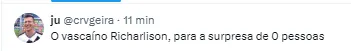 Em entrevista ao canal “Desimpedidos”, perguntado sobre qual equipe defenderia no Brasil, Richarlison citou algumas equipes, mas também escolheu o Vasco por ser seu time do coração.