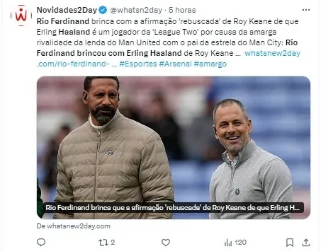 O ex-zagueiro do Manchester United e lenda do futebol inglês, Rio Ferdinand, abordou as recentes declarações de seu antigo companheiro nos Red Devils, Roy Keane, sobre Erling Haaland, do Manchester City.