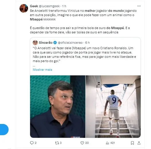 O jornalista André Rizek fez uma análise interessante sobre os melhores jogadores do futebol mundial, destacando Vinícius Júnior e Kylian Mbappé.