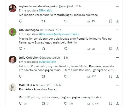 Ao ser questionado sobre alguns dos maiores jogadores da história do futebol mundial, Romário surpreendeu em sua resposta se expressando da seguinte forma: