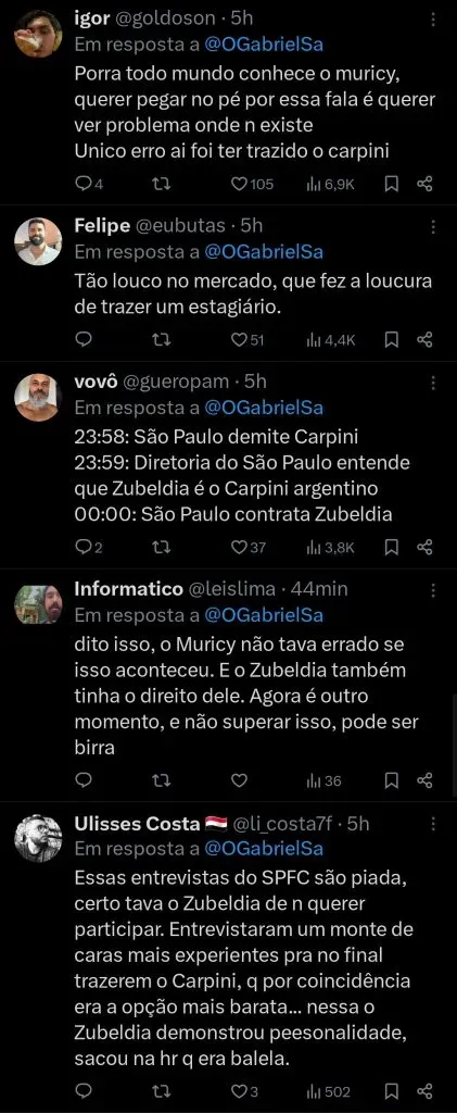 Zubeldia não é consenso na diretoria e a decisão de contratá-lo passa exclusivamente pela vontade do presidente Julio Casares em trazer um nome gringo. O mandatário deu aval e se fechou a posições contrárias.