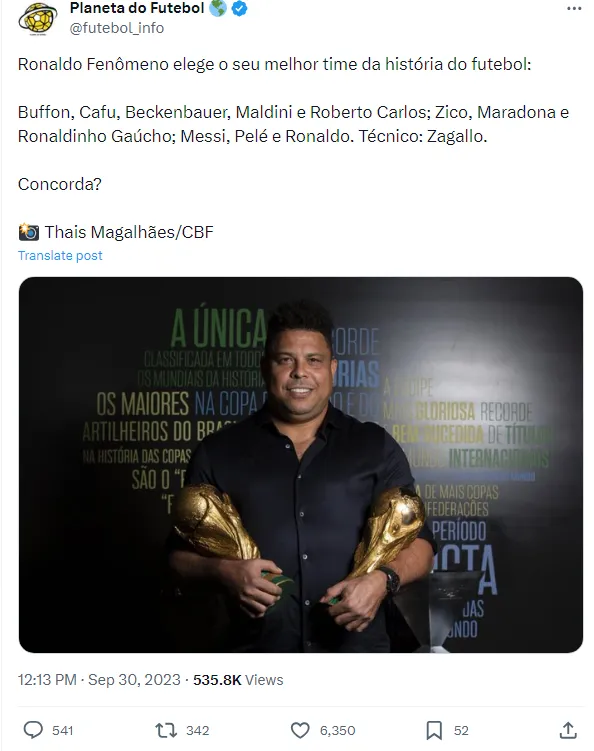 Ronaldo também montou o seu time ideal