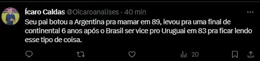 Dadá Favatto, filha do tetracampeão mundial em 1994, não gostou do posicionamento do jornalista da Globo e comento o episódio, no Twitter: “Ah, vai encher o saco de outro”, endereçou o recado.