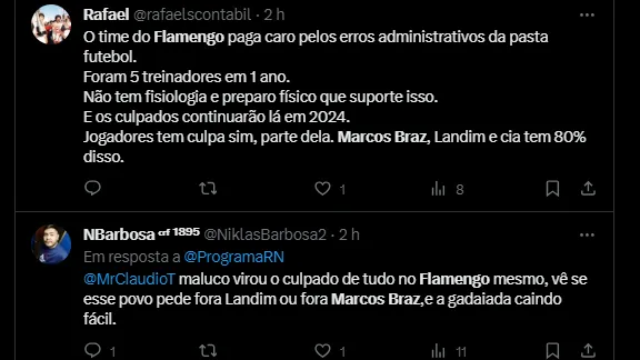 O vice-presidente de futebol do Flamengo, Marcos Braz, é um dos principais alvos da Nação com os vexames recentes na atual temporada e um 2023 sem nenhum título conquistado.