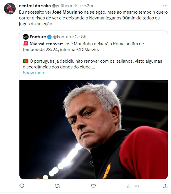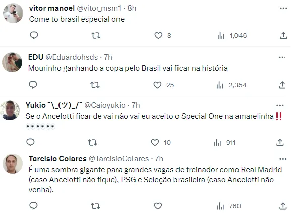 Diante de toda essa especulação e com a torcida sem ter conhecimento sobre o futuro real da seleção brasileira, surgiram vários comentários nas redes sociais pedindo a contratação do português José Mourinho, que já afirmou que não permanecerá na Roma ao final desta temporada.
