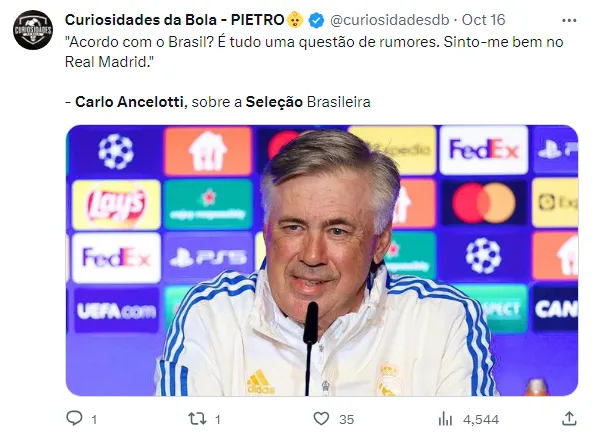 É importante lembrar que Fernando Diniz possui vínculo como interino com o Brasil até julho de 2024, período em que o contrato de Ancelotti com o Real Madrid se encerraria.
