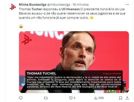 As observações de Hoeneß foram rejeitadas por Tuchel, que as considerou uma afronta à sua integridade profissional.